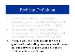 Understand that a cost flow assumption is only applied in computing the cost of ending inventory units in a periodic system but is used for each reclassification from inventory to cost of goods sold. Merge a cost flow assumption FIFO LIFO and averaging with a method of monitoring inventory periodic or perpetual to arrive at six different systems for determining reported inventory figures. FIFO and LIFO under periodic and perpetual system rani. Herein is FIFO perpetual or periodic. Prepare journal entries to record the above transactions under perpetual inventory system. Understand that a cost flow assumption is only applied in computing the cost of ending inventory units in a periodic system but is used for each reclassification from inventory to cost of goods sold. Sales-related purchase related transactions FIFO LIFO costs under perpetual system Periodic Inventory by methods see rest of problem for full. 240 84 324. EX 7-7 FIFO and LIFO costs under perpetual inventory system The following units of an item were available for sale.